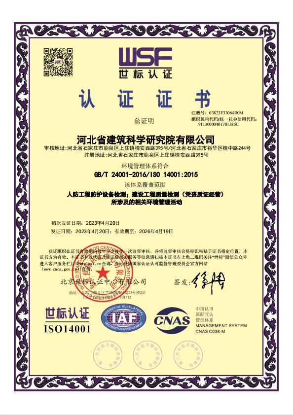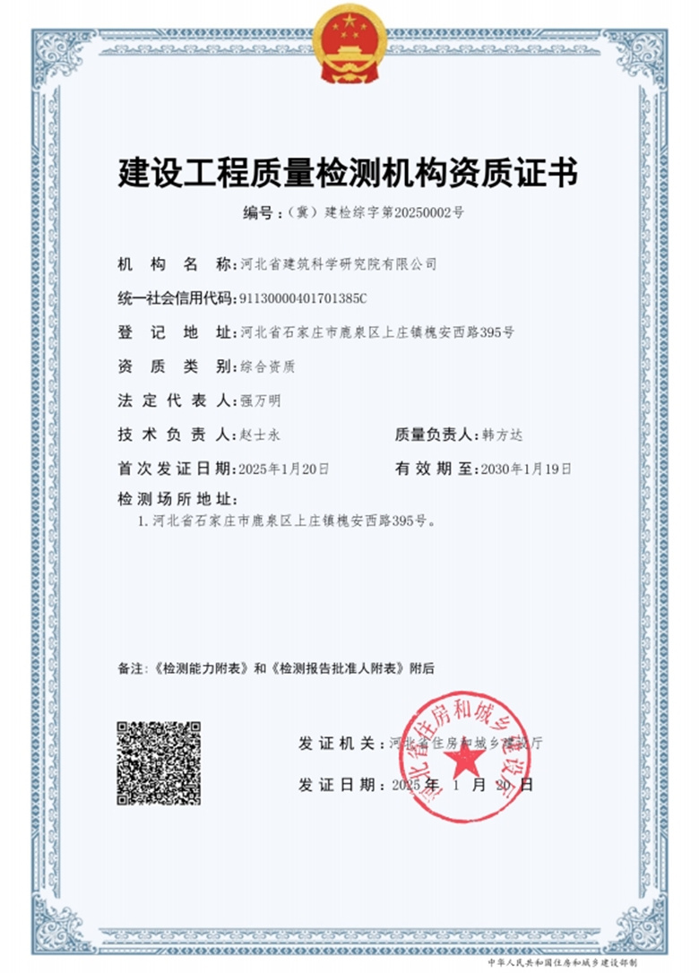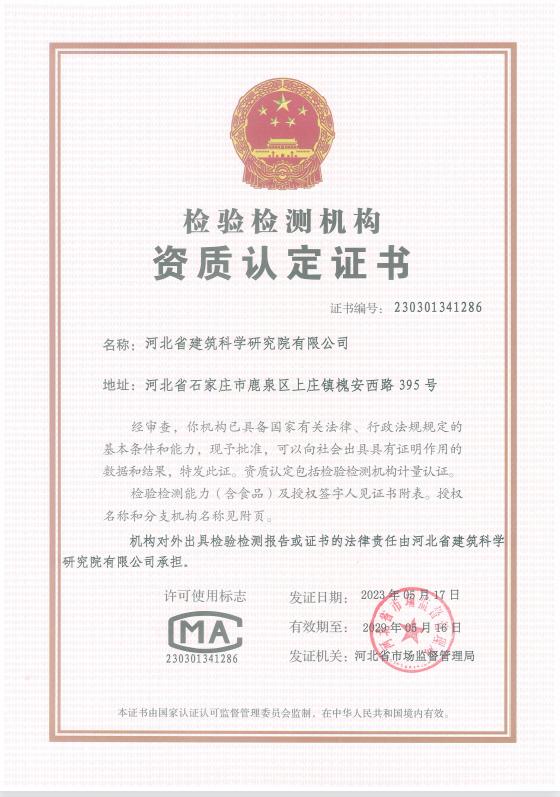 河北省建筑科學(xué)研究院有限公司CMA證書